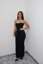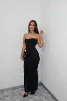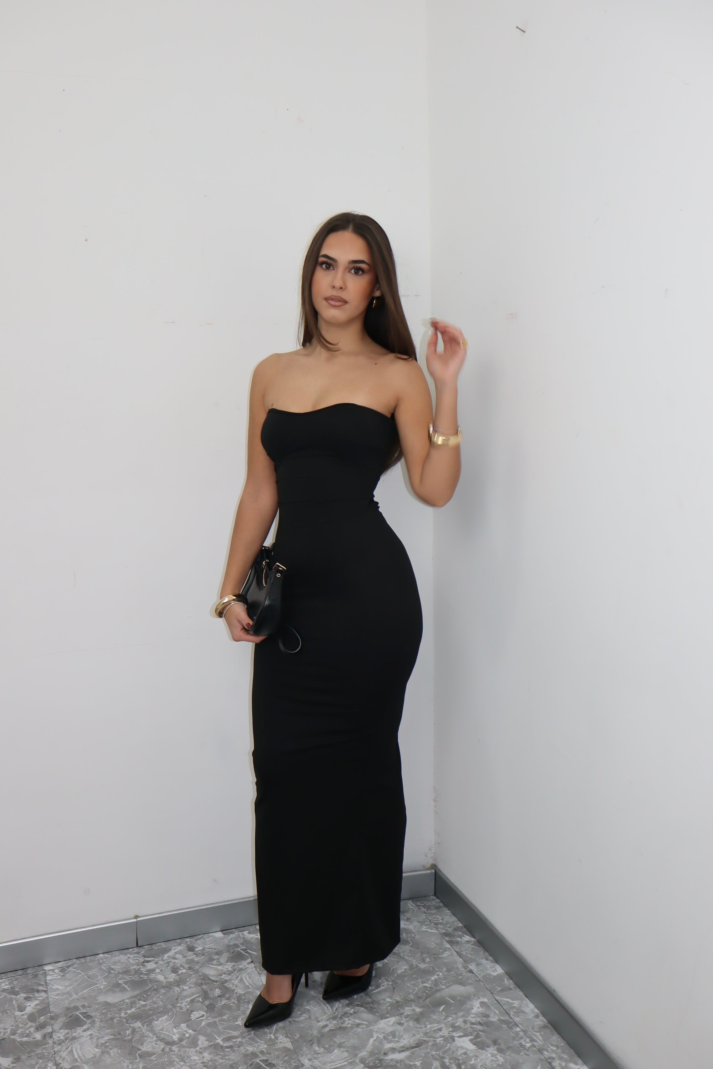 Abito aderente in lycra , con coppe interne e intreccio sul retro , taglia unica .