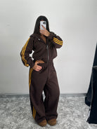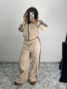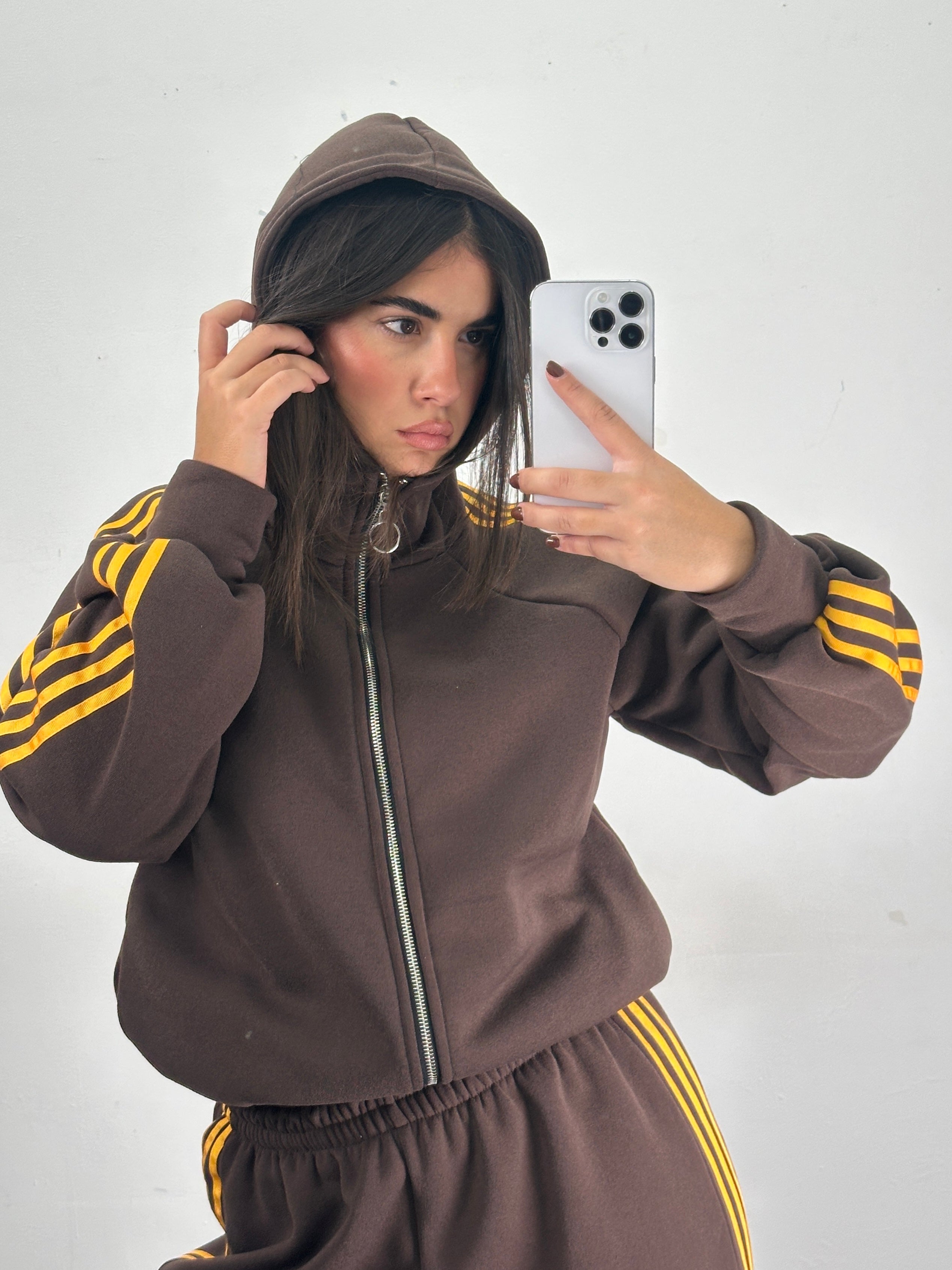 coordinato felpato, pantaloni elastici e felpa con zip e cappuccio. Veste fino ad una L.