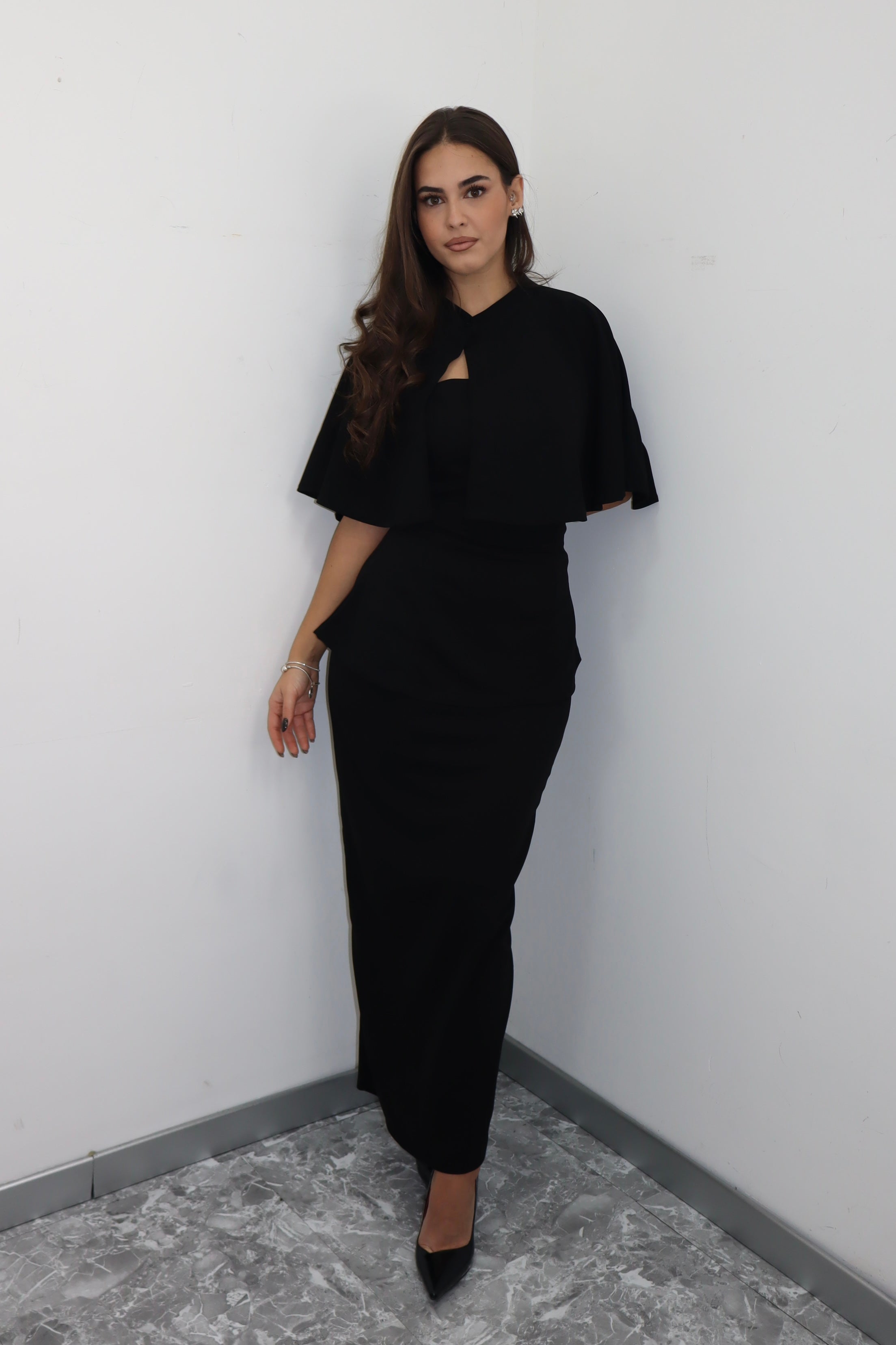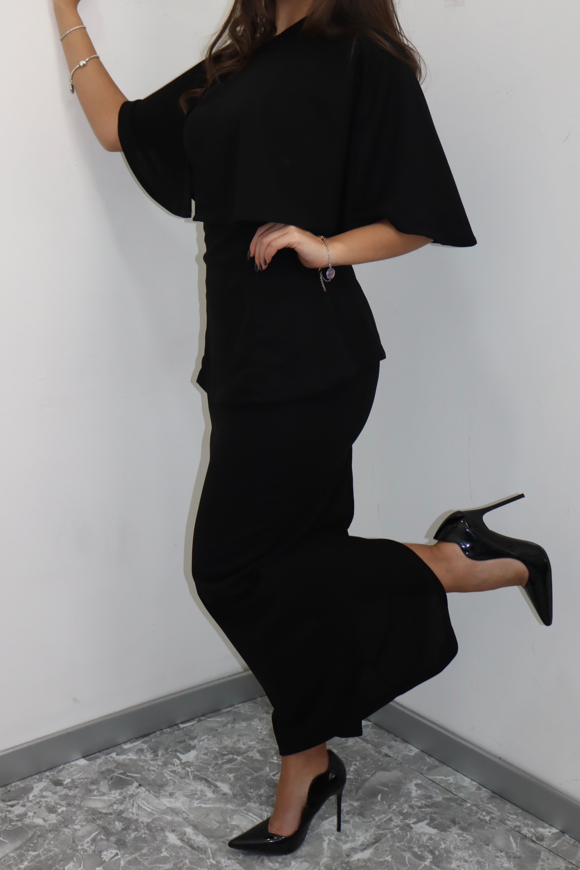 Coordinato 3 pezzi : top a fascia con coppe, copri spalle e gonna a tubino.