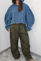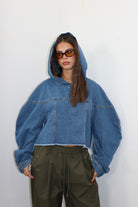 Aggiungi un tocco di stile con la felpa denim balloon! Realizzata in morbido denim, questa felpa è dotata di maniche balloon e un cappuccio per un look unico e alla moda. Perfetta per chi ama l'originalità e il comfort.