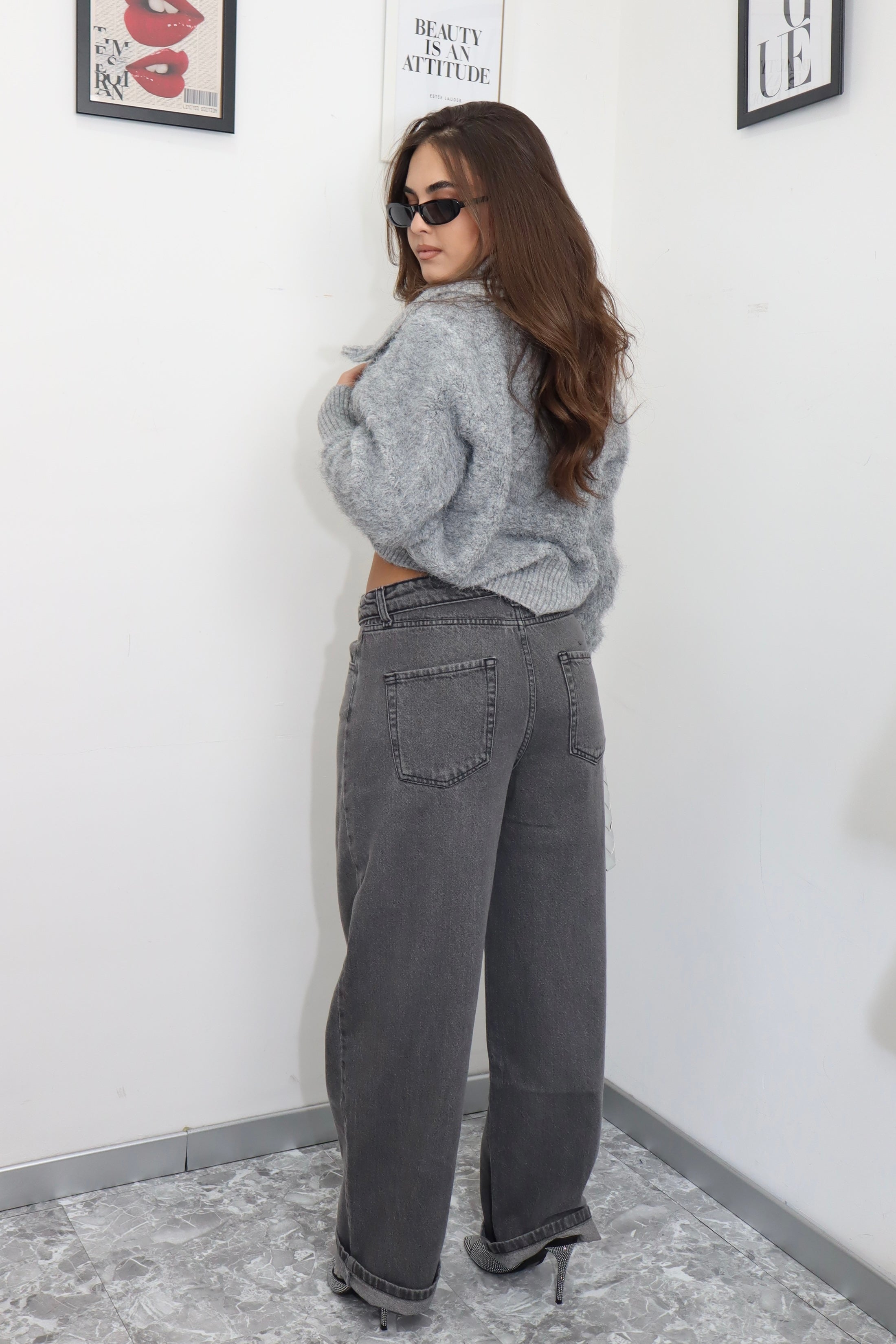 jeans grigio con risvoltino , la modella indossa M , ed é alta 1,65 cm circa.
