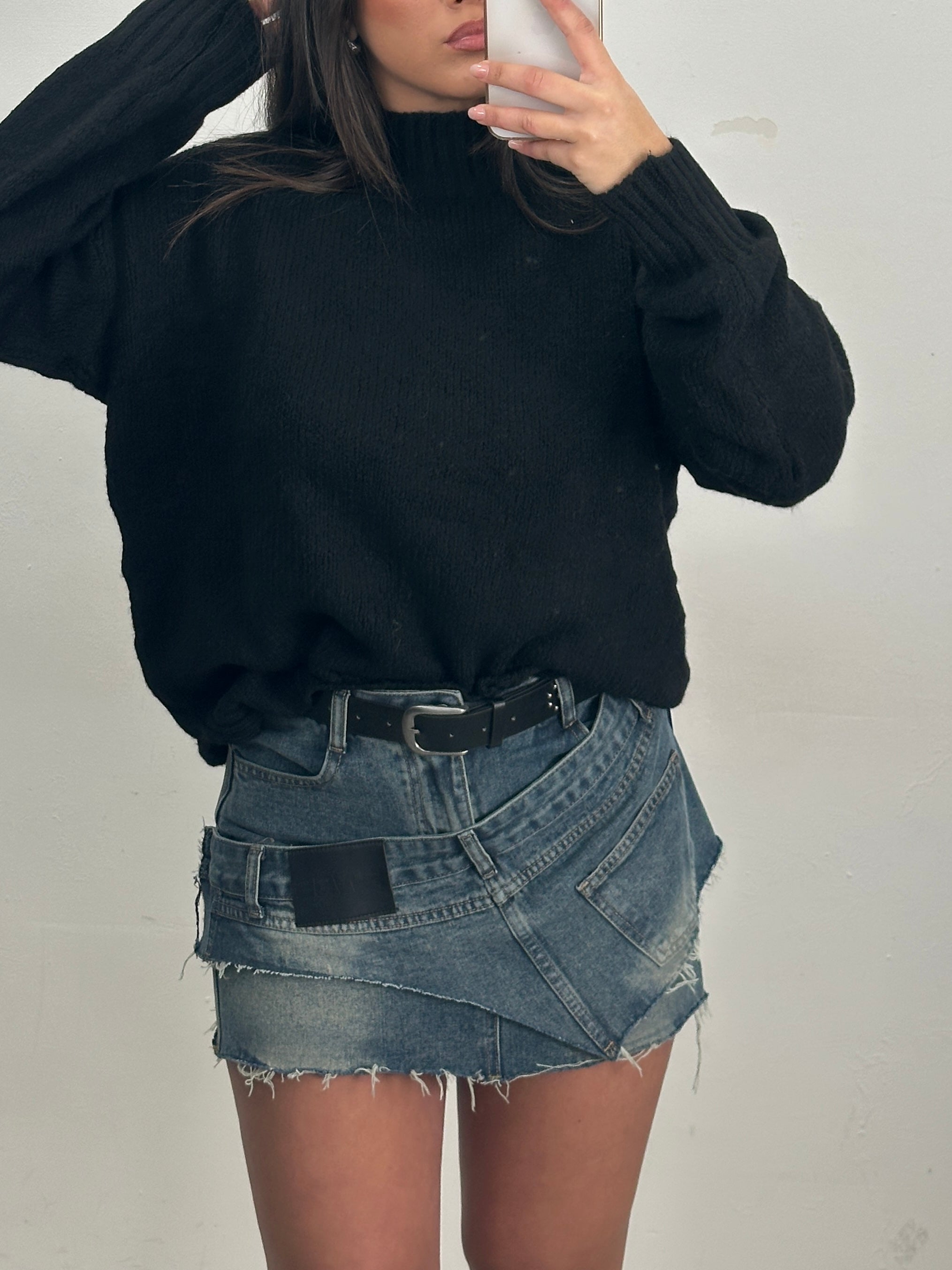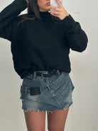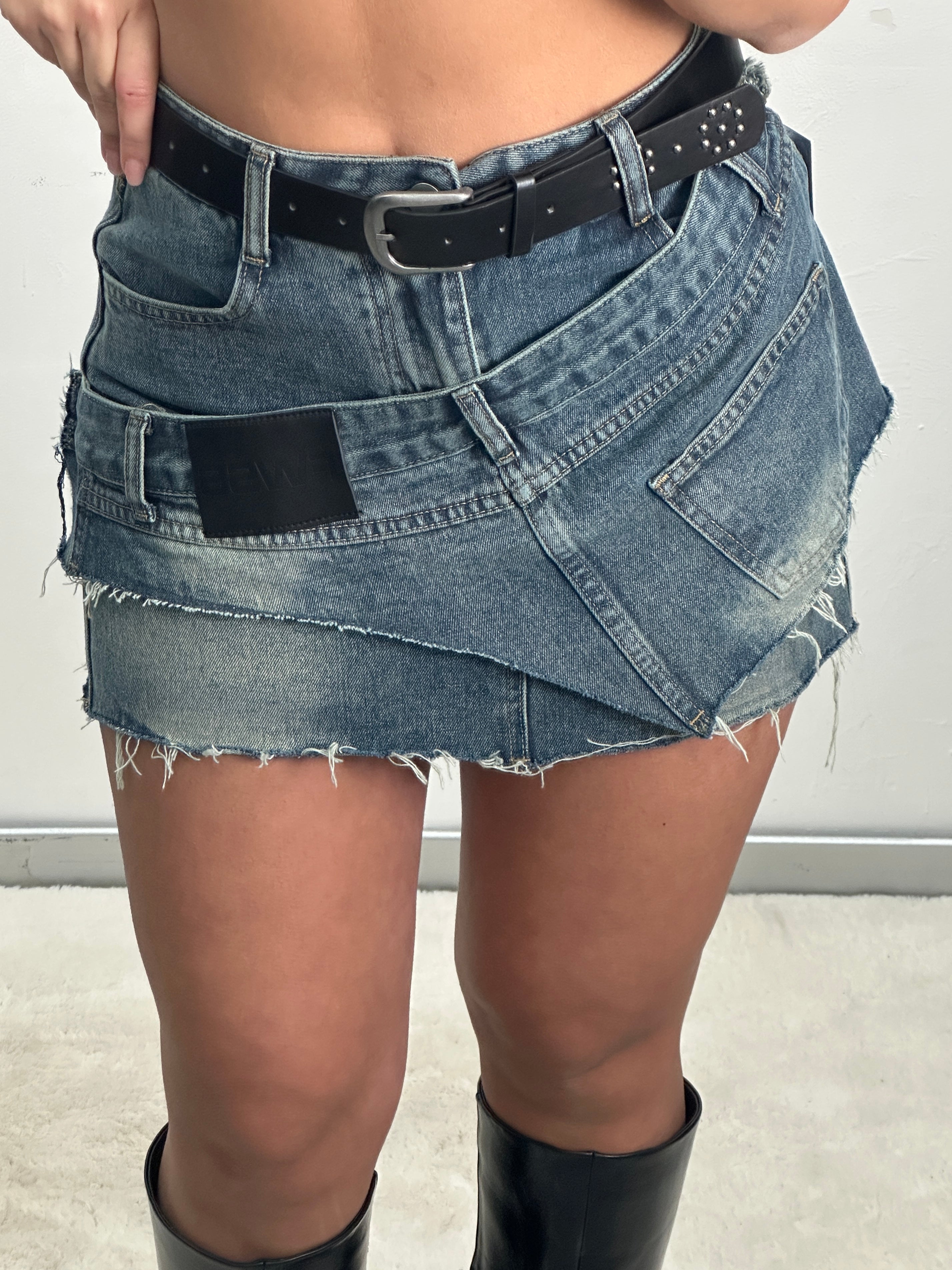 Mini gonna in denim con cintura , sottoveste a pantaloncino.