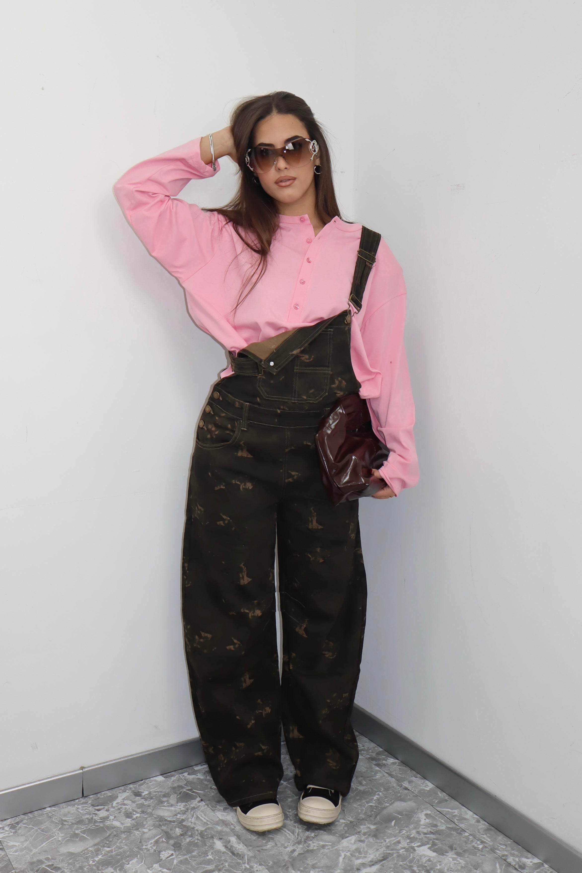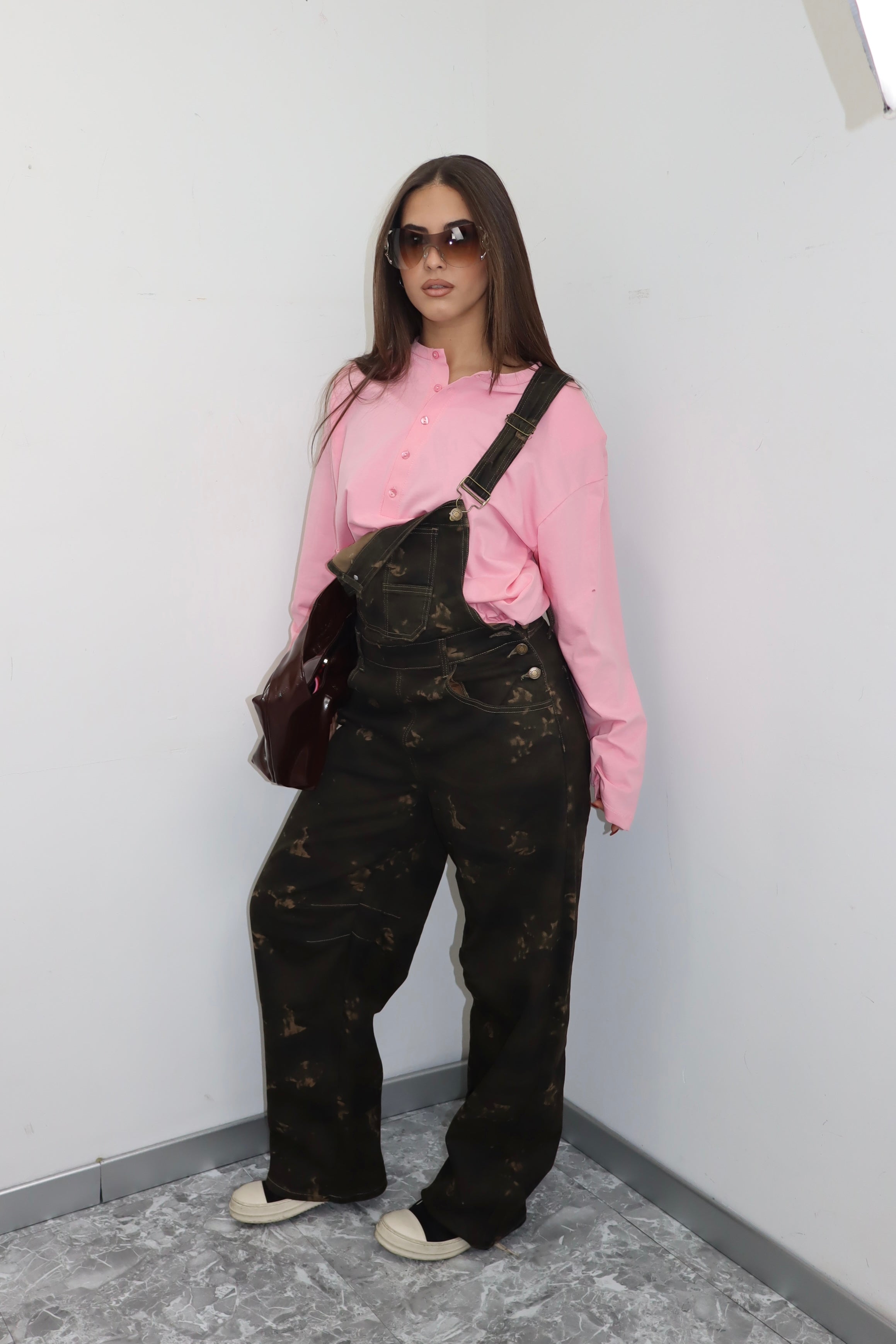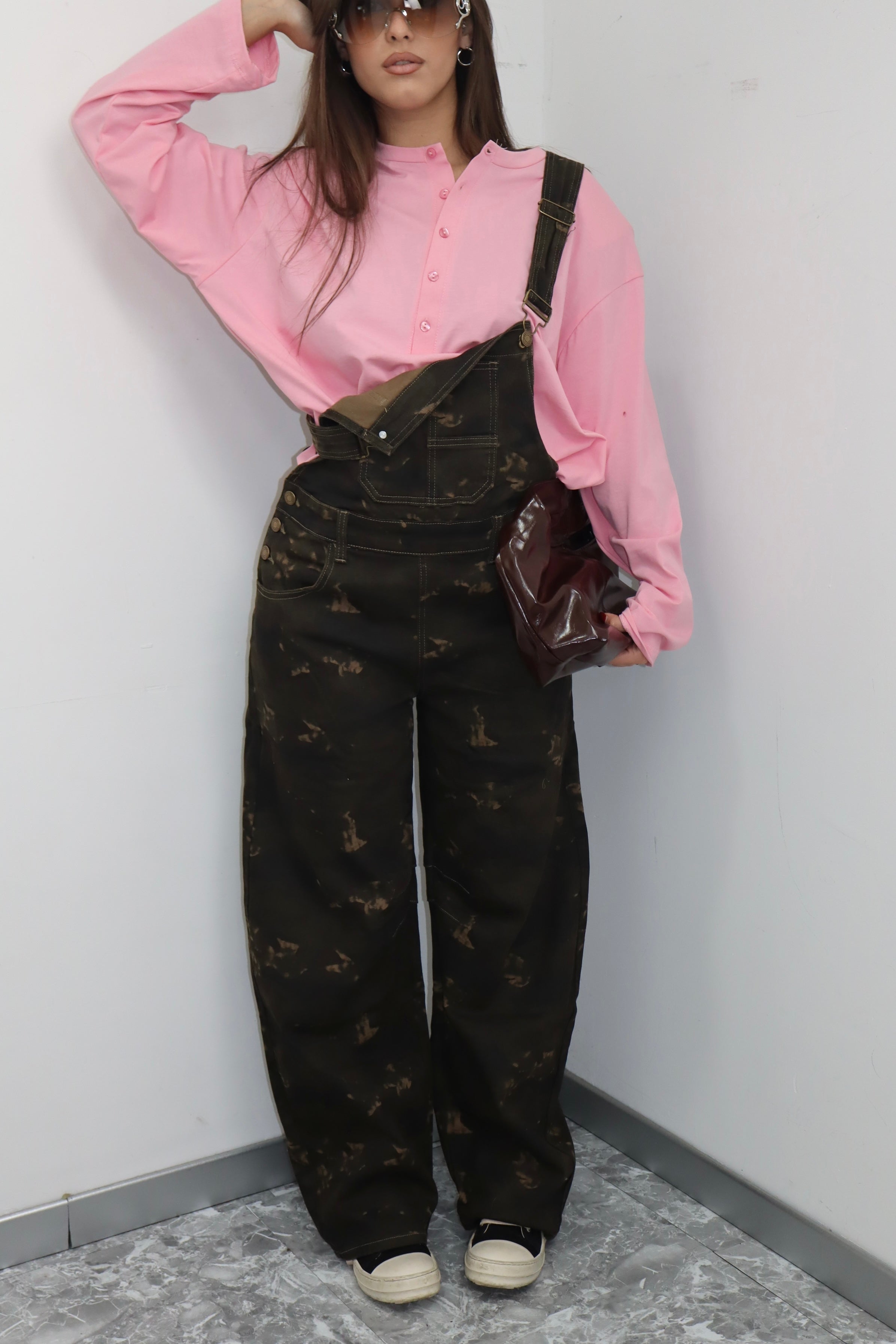 Salopette mimetic , la modella indossa M per un effetto più over . ALTEZZA MODELLA : 1,65 cm circa .