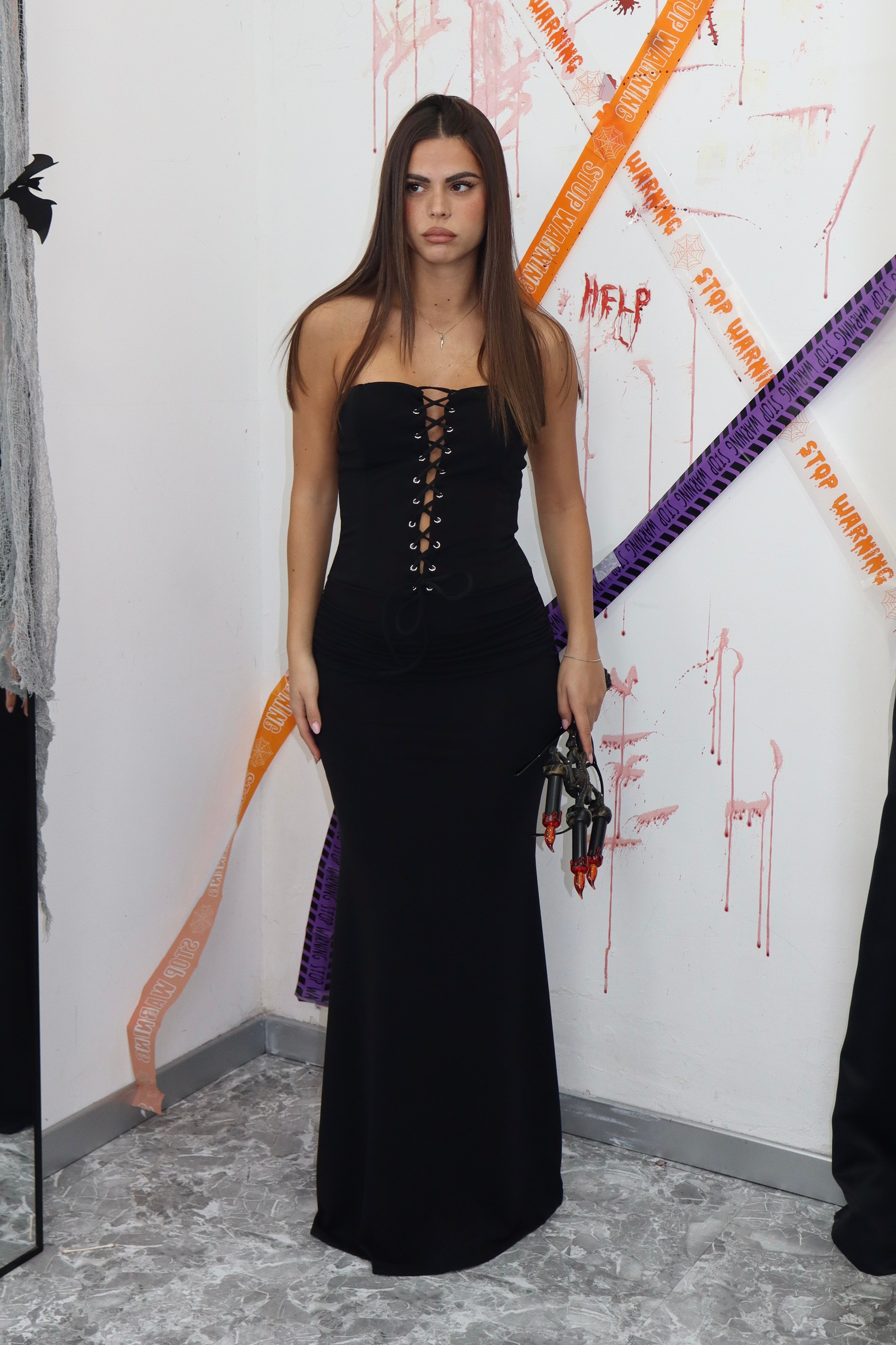 abito lungo a fascia con stringhe , taglia unica, in tessuto.