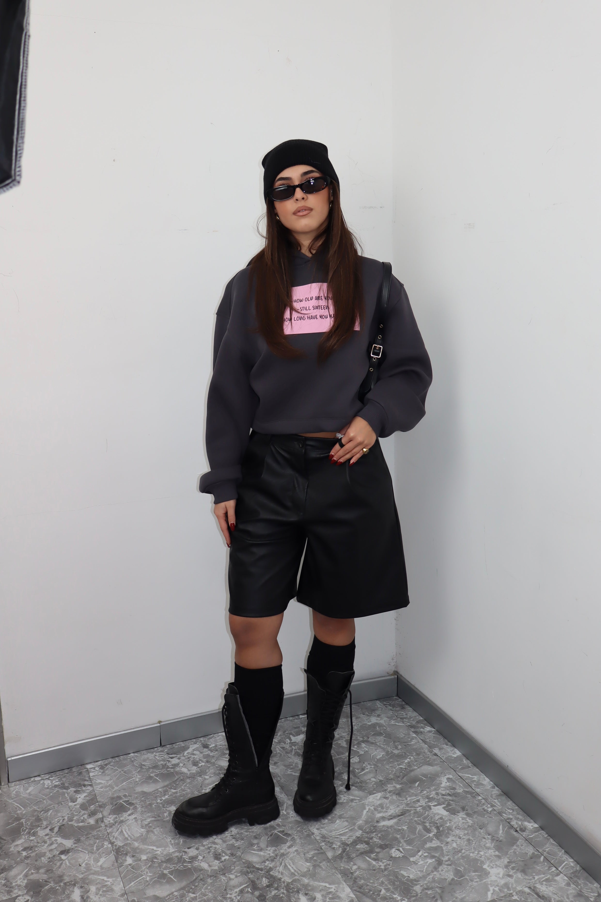Felpa con stampa rosa , taglia unica felpata all’interno.