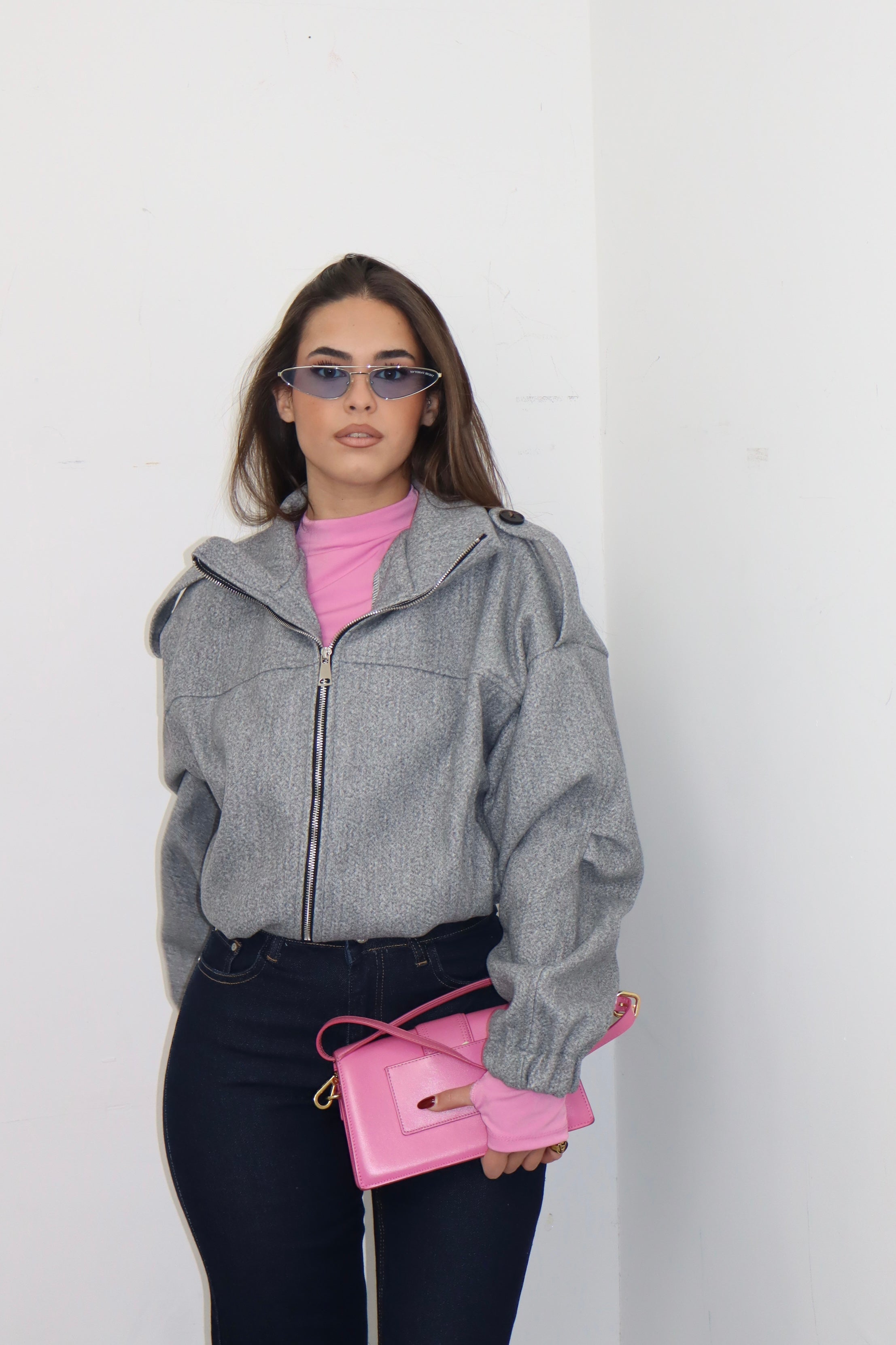 Cappotto crop grey