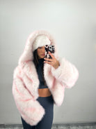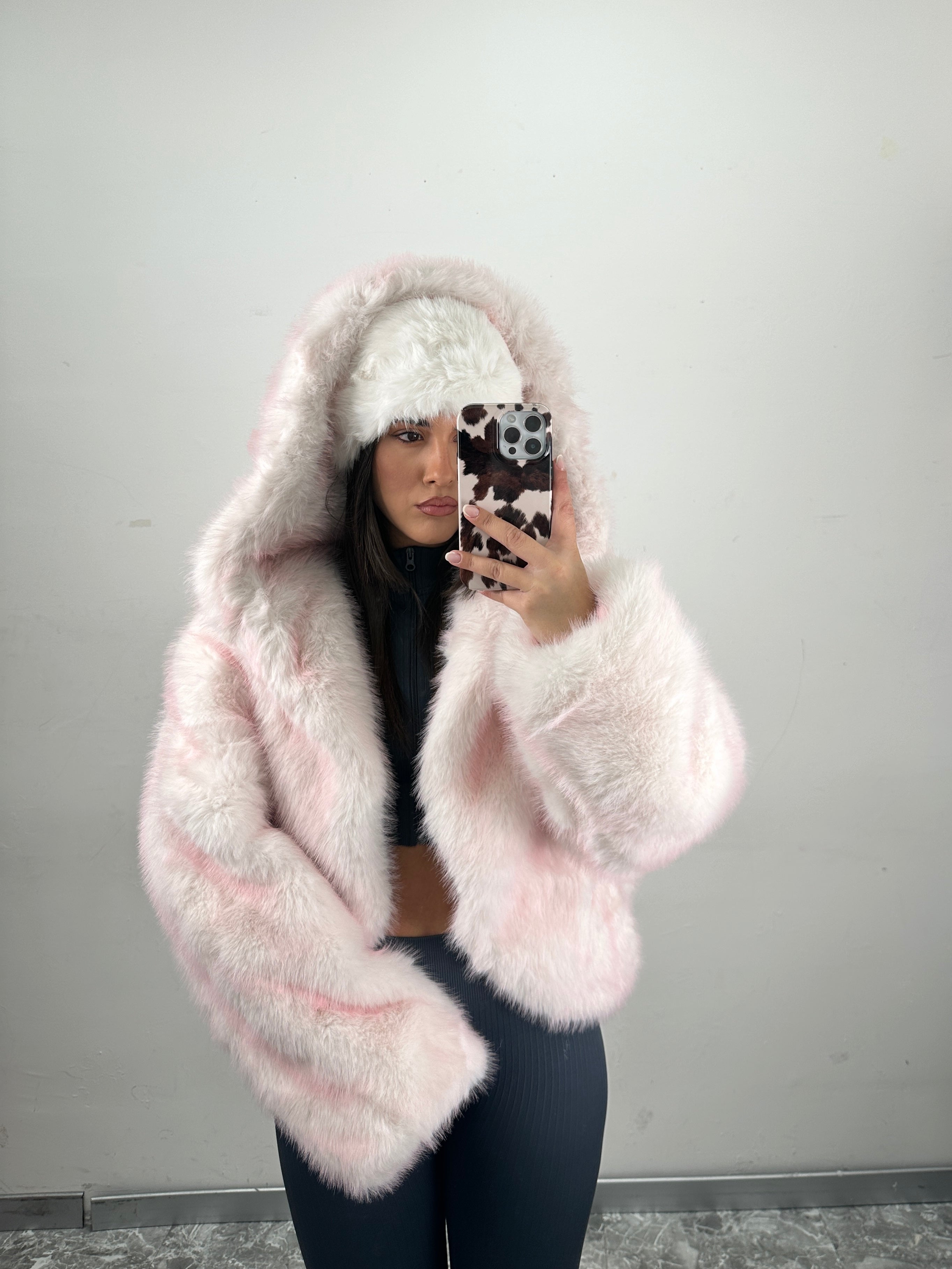 Ecofur con cappuccio bianca e rosa , taglia unica.