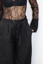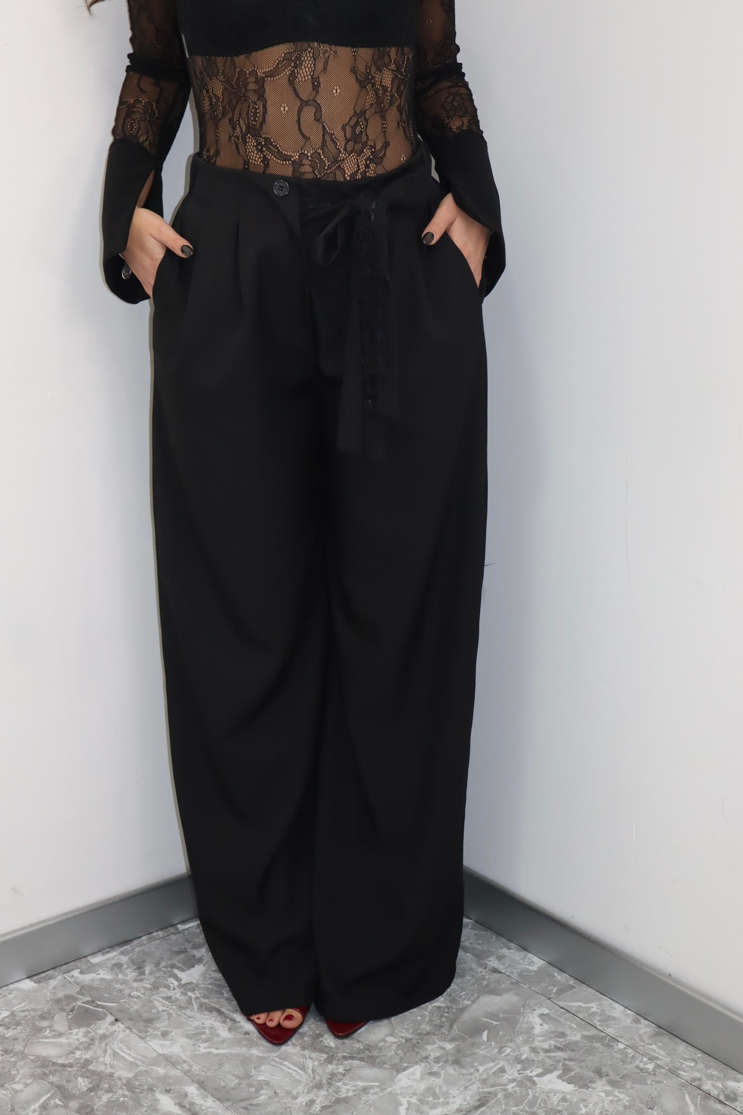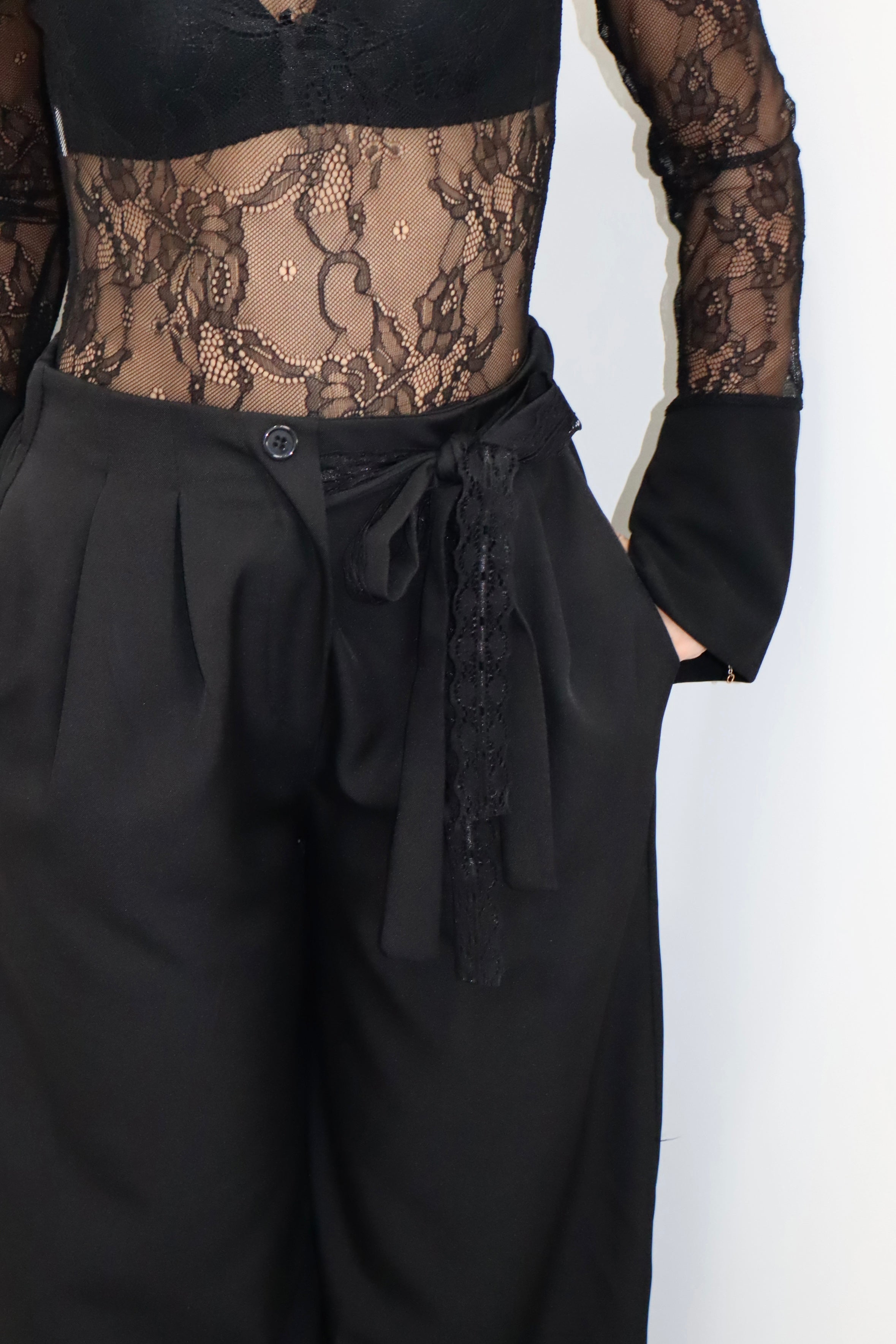 Pantaloni in tessuto con elastico sul retro , dettaglio fiocco in pizzo , taglia unica vestono fino ad una L .