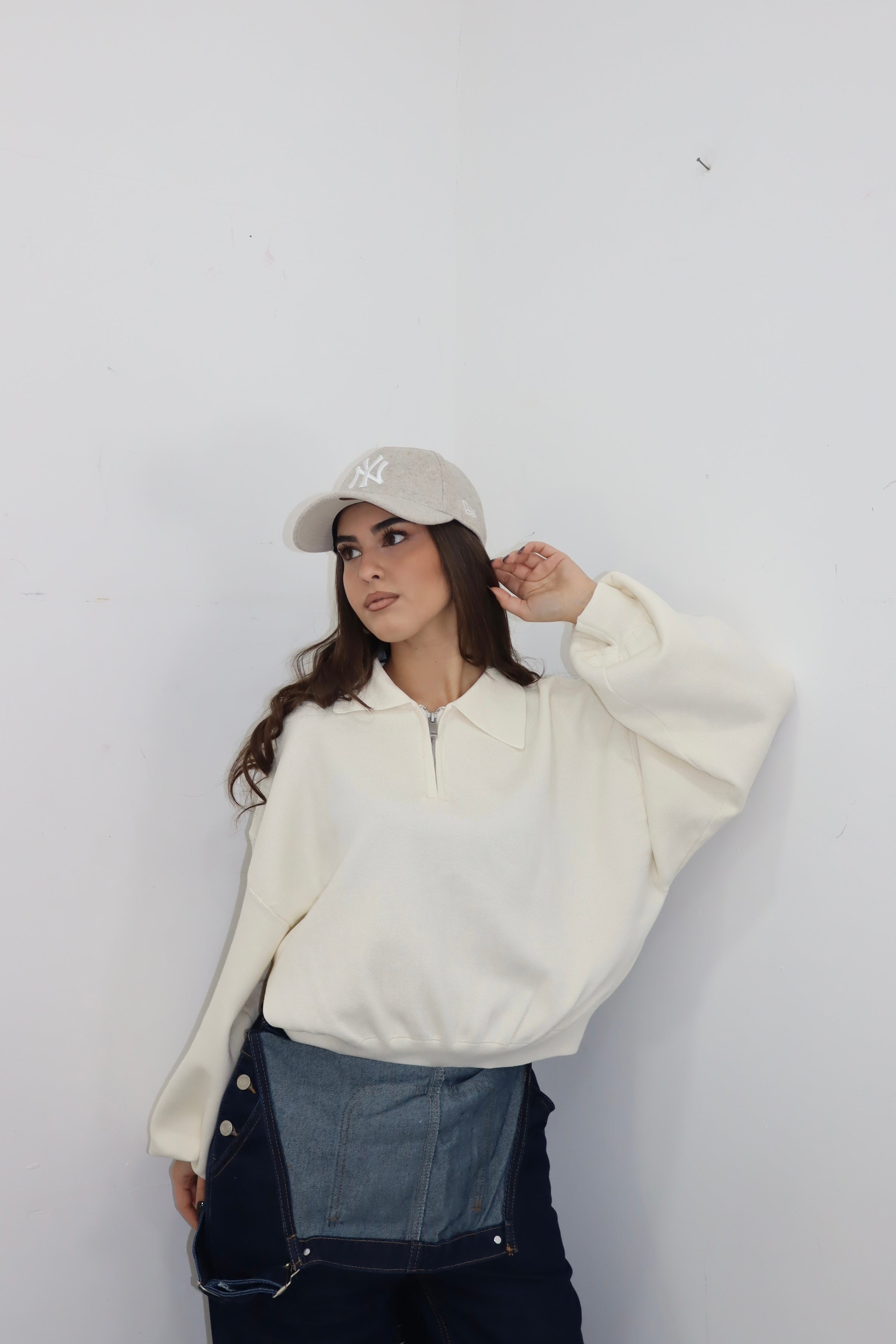 Polo con zip e manica a sbuffo , la modella indossa S/M.