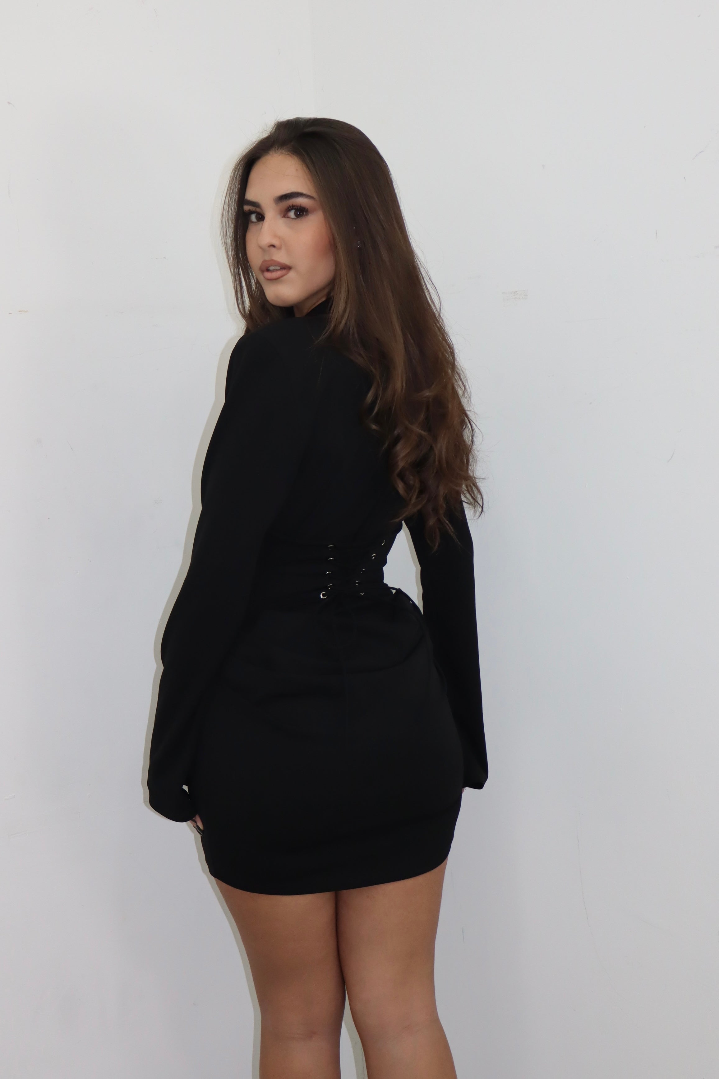 Abito a giacca effetto bustino , dettagli drappeggio taglia unica.